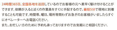 大阪市鶴見区での水道トラブルは、『水の救急車鶴見区店』が365日、最短5分で迅速に解決します。トイレつまりや水漏れに対応し、スタッフは鶴見緑地でのネイチャーウォークを通じてエコ意識を養っています。地域に密着したサービスで、皆様の生活を支えます。